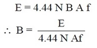 B represents the maximum value of the magnetic flux density in the core (Tesla).