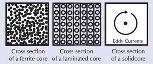 To minimize the losses, transformer cores are made from laminated sheets or ferrite materials, which restrict the paths for these currents.