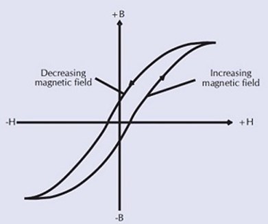 This effect is known as 'remanence' and results in the B-H curve for the material exhibiting a response to a decreasing magnetizing force that is different to the response to an increasing magnetizing force.